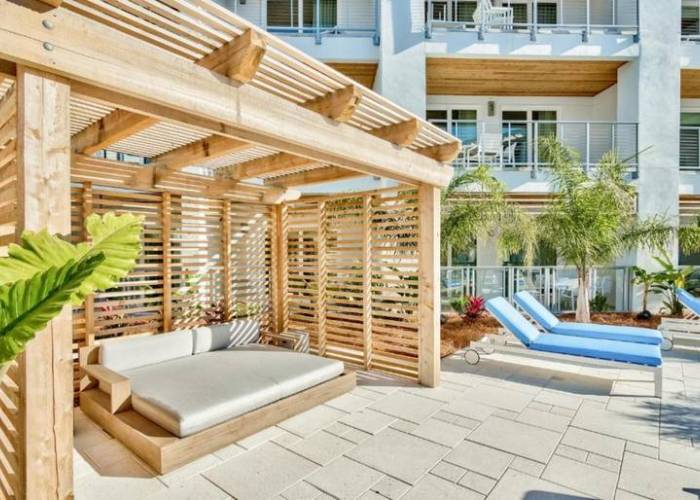 At the center of the Pointe on 30A complex is the award-winning resort-style pool featuring custom-made cabanas, a hot tub, tanning deck, and fire pits. Lined with palm trees and the natural vegetation of the coast, it's a perfect setting to relax and decompress. The Pointe on 30A also features a covered space known as the Cava Lounge which is and outdoor retreat outfitted with flat-screen TVs, ultra-modern lounge furniture, and ambient music. There is also a state-of-the-art fitness center, hot tub, and electric vehicle charging on site.